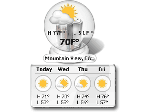 Got Weather? Displays weather conditions inside a 3D glass sphere.